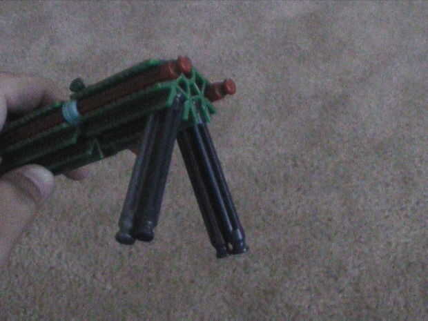 una pistola KVG pequeño con sólo 12 unidades. Dispara un buen 10-15 pies dependiendo de lo que ruberbands utilizas.Paso 1: reunir los pats necesita cada munición de below.for cosa utilizo los blancos poco. podía disparar cualquier barra pero éste va