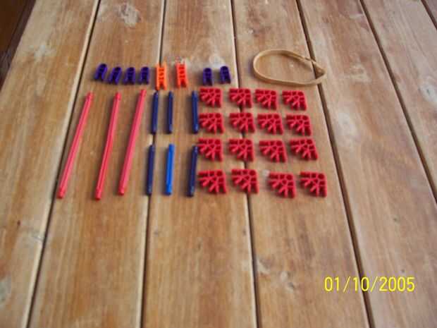 este es mi primer instructable. No es muy potente pero va a tirar unos 15 pies fotografiar barras verdes poco.Ah y perdón por las fotos mal.Paso 1: piezas a conectores:2 naranja13 verdebarras:2 verde (incluyendo 1 de munición)2 rojo4 azul1 amarilloot