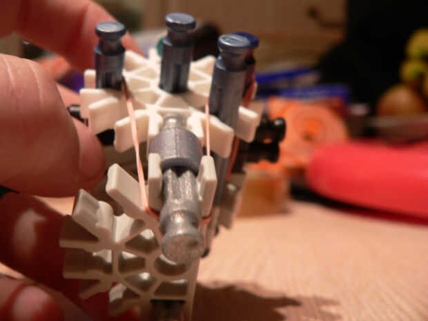 este es mi primer arma de KVG :)Es una pistola pequeña(Estadísticas):Cómoda manijaverdadero gatillo (de Córcega)5 redondos compartimientopequeñobarras de brotes verdesrango: 25-30 pies (con más goma bandas podrían tirar más lejos)Permite así obtener