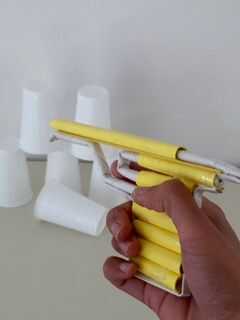 Han hecho esas armas para derribar las pirámides de las tazas de papel, en las ferias y Cumpleaños fiestas... algo que todo el mundo disfruta.