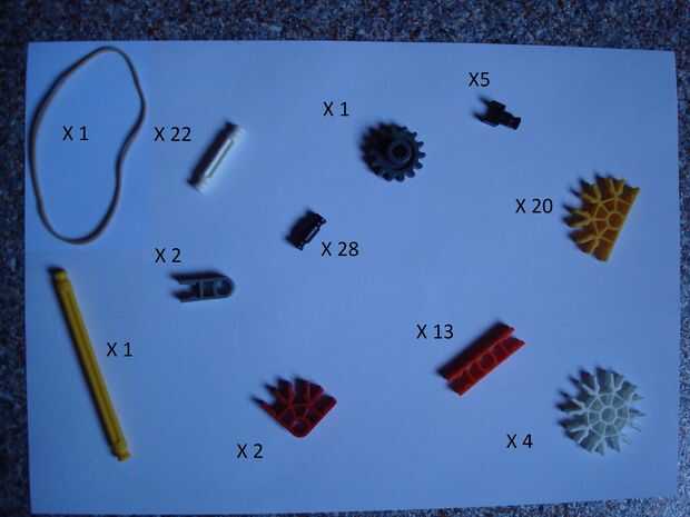 esta pequeña pistola K'nex es muy simple y utiliza solo 12 piezas (no incluye munición o una vista). No utiliza una banda elástica o bien.Paso 1: partes Arma:4 barras azul2 barras amarillas1 barra blanco2 conectores verdes1 conector amarillo3 conecto