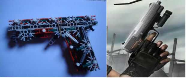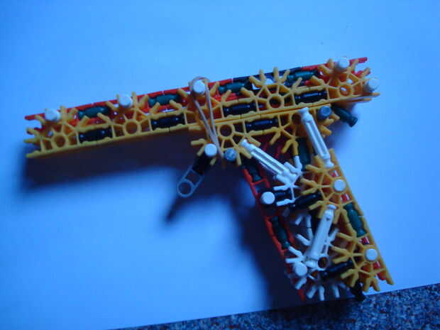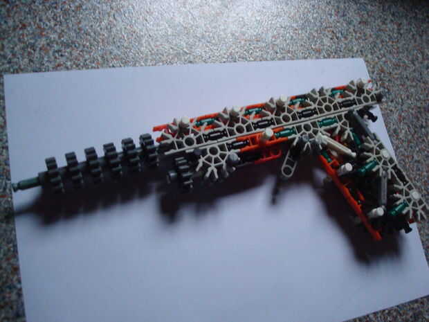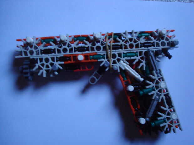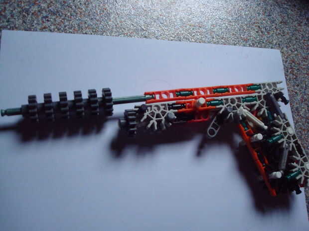 imagen 6: la misma pistola, hacer con conectores gris/negro! es igual como la pistola de amarillo y naranja, pero con diferente coler estos conector puede ser aficionado en la Knex Alife! Dragon set (para mal, ya no es para saile.)