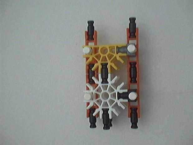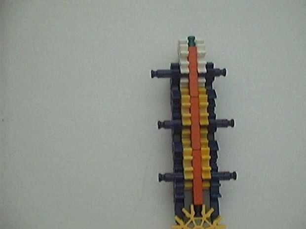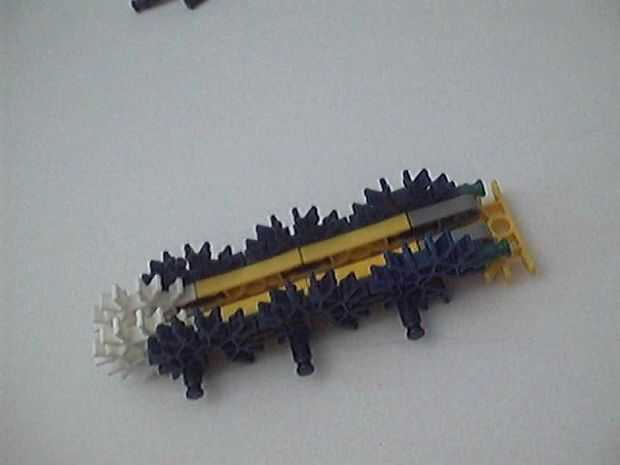 1. en primer lugar, edite el percutor. Toma a los espaciadores de y sustituir el conector amarillo medio con un azul. ¡ No olvide la barra verde! Esto hace que la barra roja no tirar de. También no olvides las barras verdes de los conectores amarillos.