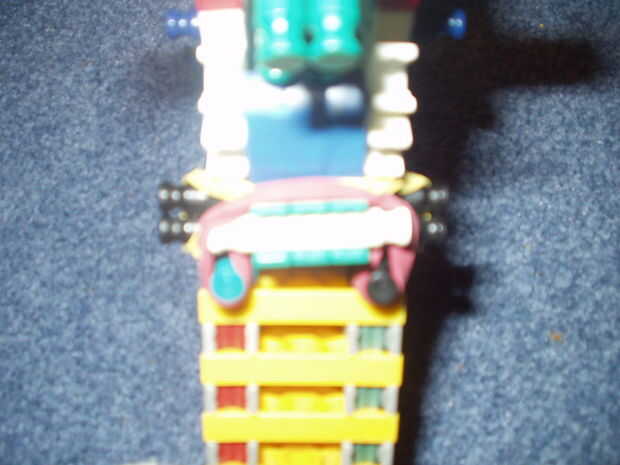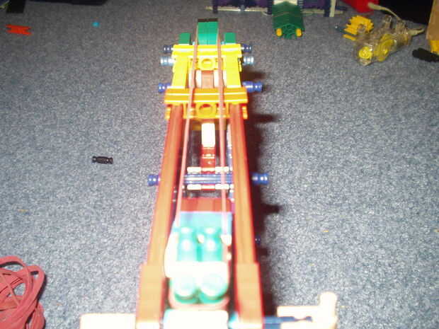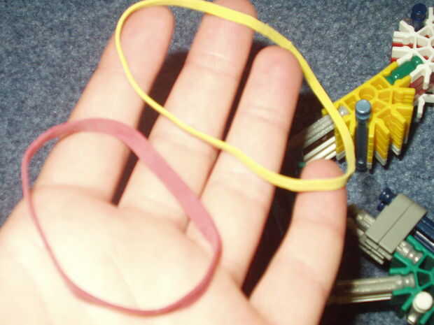 Para poner la banda en el brazo negro en la parte delantera de la carga y tire hacia atrás a la corona y coloque en uno de los dos conectores verdes luego jale el lugar de un diente y repetición el proceso hasta que tiene aproximadamente 8-14 bandas (dependiendo de cuántos tenga). Apriete el gatillo un par de veces y las bandas deben salir.
