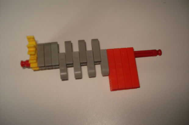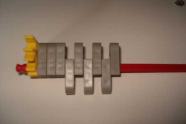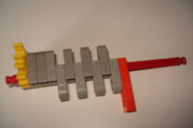 esta es un arma de KVG que usted puede hacer si no tienes muchas piezasPaso 1: Reunir las piezas para hacer el arma que vas a necesitarmango2 conectores verdes2 barras verdesbarra azul 14 conectores de púrpuraCañón3 barras rojas2 barras amarillas2 ba