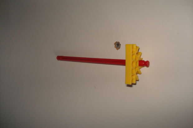 esta es una de las pistolas más pequeñas cada vez. Lo hice cuando llegué realmente aburrido un día. Realmente tiene un percutor y un gatillo! La pistola entera mide aproximadamente 2 pulgadas. Puede disparar pequeños pedazos verdes o blancos. Preferi