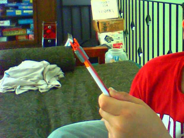 este es el Super Maul, con muy gran potencia de fuego, puede disparar un lápiz a través de una botella de coca cola.No muy difícil de hacer y usted puede comprar todas las piezas en la tienda (u orden) Ideas y fotos de http://www.officeguns.comChicos