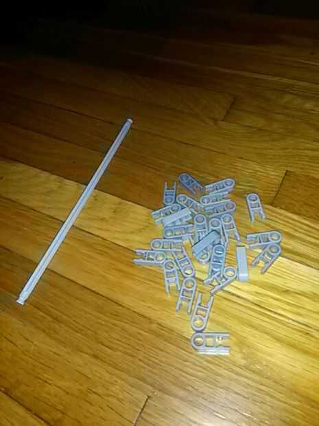 La barra gris y todos los conectores gris y ensamblarlos como se muestra. Y listo. Todo lo que queda es disparar.