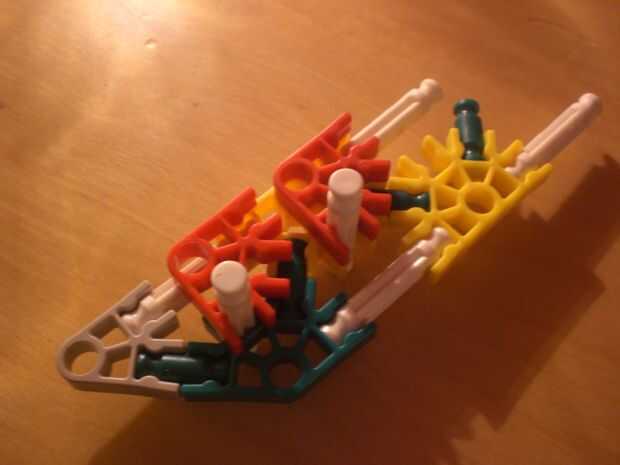esta es un arma de KVG que usted puede hacer si no tienes muchas piezasPaso 1: Reunir las piezas para hacer el arma que vas a necesitarmango2 conectores verdes2 barras verdesbarra azul 14 conectores de púrpuraCañón3 barras rojas2 barras amarillas2 ba
