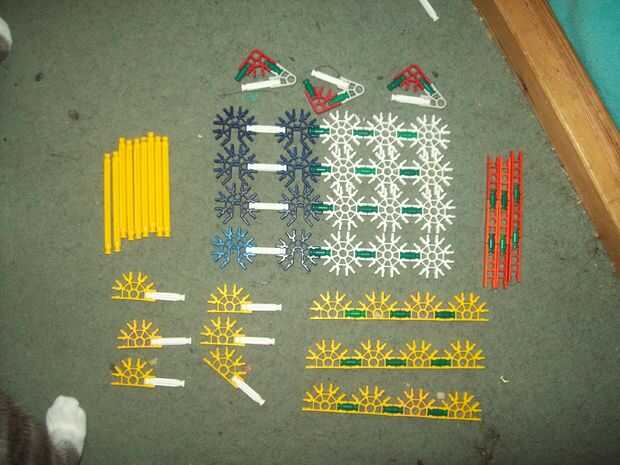 esta es un arma de KVG que usted puede hacer si no tienes muchas piezasPaso 1: Reunir las piezas para hacer el arma que vas a necesitarmango2 conectores verdes2 barras verdesbarra azul 14 conectores de púrpuraCañón3 barras rojas2 barras amarillas2 ba