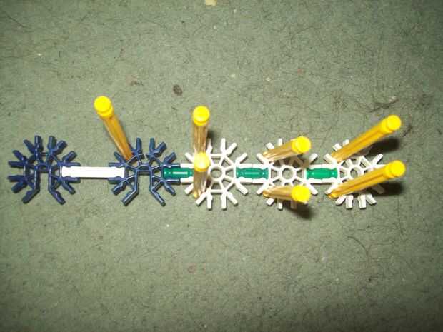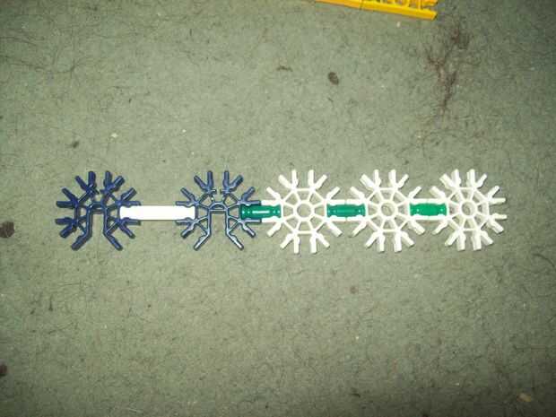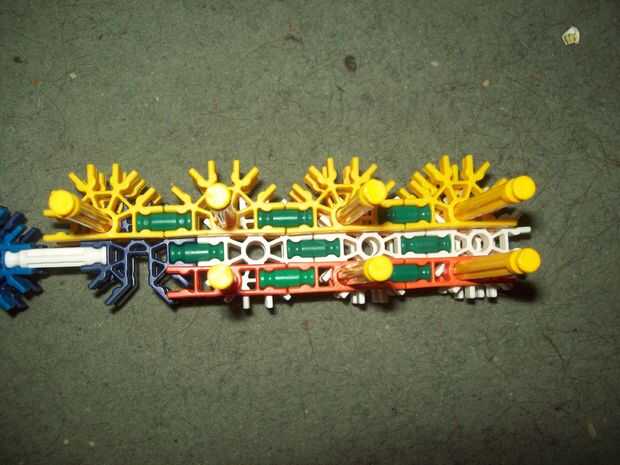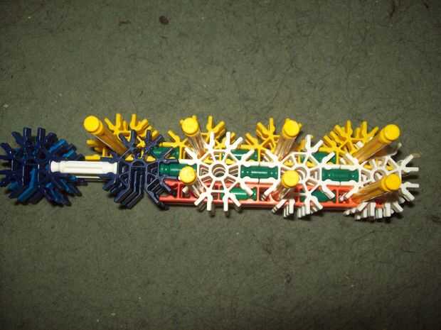 esta es un arma de KVG que usted puede hacer si no tienes muchas piezasPaso 1: Reunir las piezas para hacer el arma que vas a necesitarmango2 conectores verdes2 barras verdesbarra azul 14 conectores de púrpuraCañón3 barras rojas2 barras amarillas2 ba