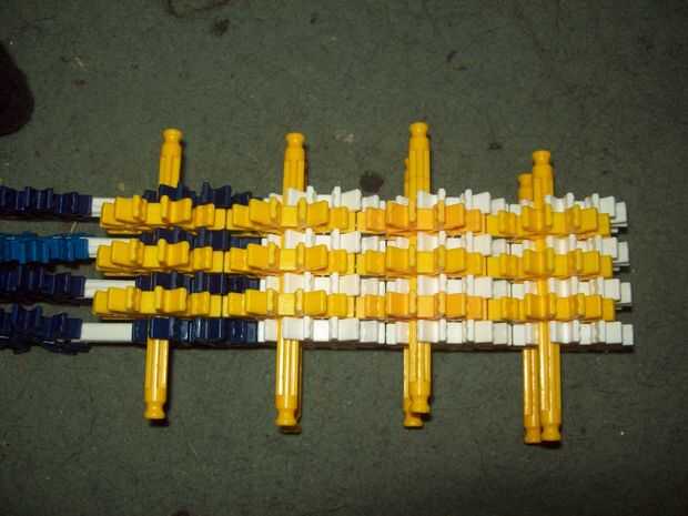 24 requiere KVG piezas, dos pequeñas bandas de goma y algunas pequeñas bandas de goma para munición (trabajo de bandas de refuerzo).Paso 1: El mango Paso 2: Cañón y disparo Paso 3: Mecanismo de carga Paso 4: Juntándolo todo Puede que tengas problemas