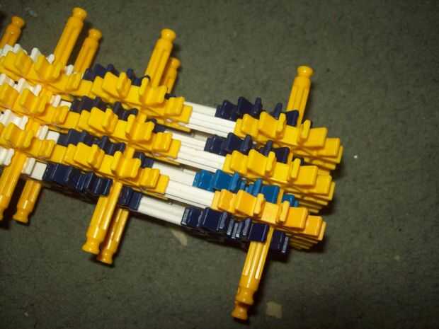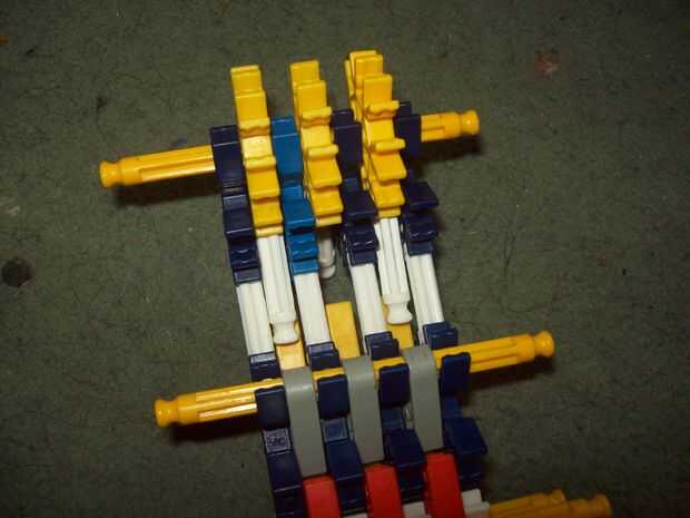esta es un arma de KVG que usted puede hacer si no tienes muchas piezasPaso 1: Reunir las piezas para hacer el arma que vas a necesitarmango2 conectores verdes2 barras verdesbarra azul 14 conectores de púrpuraCañón3 barras rojas2 barras amarillas2 ba