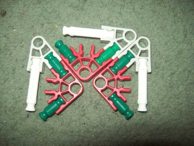 esta es un arma de KVG que usted puede hacer si no tienes muchas piezasPaso 1: Reunir las piezas para hacer el arma que vas a necesitarmango2 conectores verdes2 barras verdesbarra azul 14 conectores de púrpuraCañón3 barras rojas2 barras amarillas2 ba