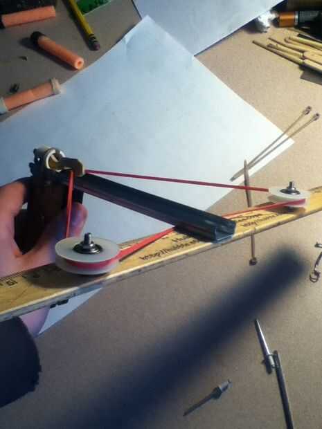 El arco de la pistola es algo que hice con el desecho de otros proyectos, pero las piezas eran todos bastante comunes o fácilmente producción formas, así que yo diría esto como un concepto de inspiración; no es una guía exacta.