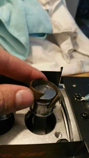 suavemente Levante el anillo aparte y deslice sobre la parte superior de la cabeza del pistón. Anillos limpiamos y cabezas de pistón.