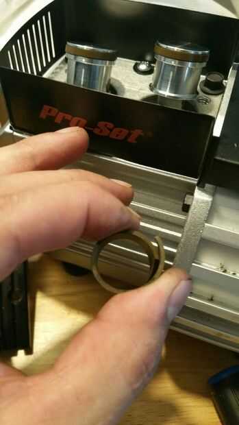 Doblar ligeramente los anillos hacia el interior para que ajuste cómodamente a la cabeza del pistón, luego levante un poco y deslice sobre la parte superior de la cabeza del pistón dentro de su ranura
