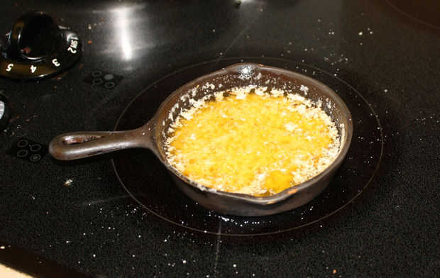 Derretir la mantequilla en una olla pequeña.  Exprimir un par de dientes de ajo en la mantequilla fusión junto con una cucharadita de sazonador Cajun, o tal vez sólo Cayena o chiles ahumado Chipolte.  Agregue el queso parmesano rallado.