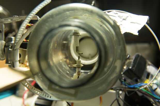 El cañón es la parte más fresca del proyecto. Está hecho de un duro proyecto de plástico transparente con algunos tubos de pvc y los accesorios y algunos palillos de madera. Utiliza el mismo principio como un arma de puntal. El cañón está caliente pegado a la botella. Los palillos de madera sirve como punto de montaje para el servo de aerosol de combustible.