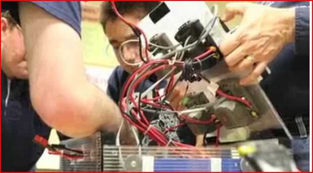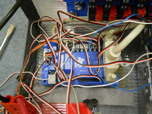 El cuadro"eléctrico" está conectado con el robot a través de una variedad de cables.