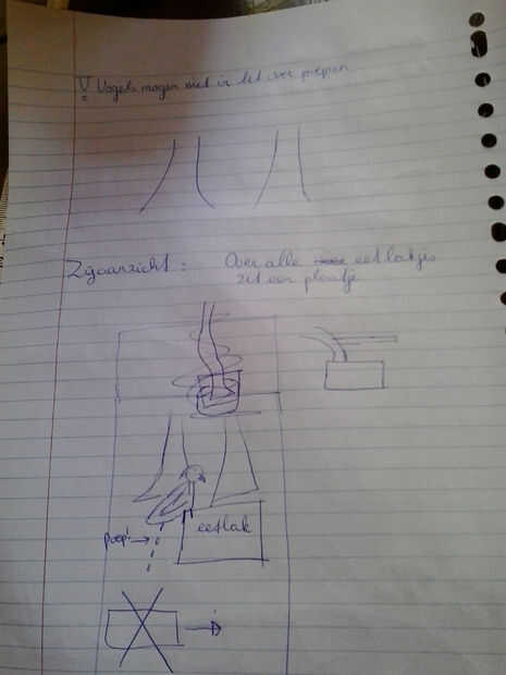 La idee siguiente era más un objeto de sollid donde los pájaros pueden comer nadar en, whitout las partes rotaiting. En esta situación debo actualizar la comida y agua todos los días como lo hago ahora, pero que puedo practicar whit el cortador del laser y las impresoras 3d y otras máquinas. Y no perder el tiempo intentando crear un timeplan difícil. Me skipt objetos al ápice de parte del movimiento, debido a las limitaciones de tiempo.