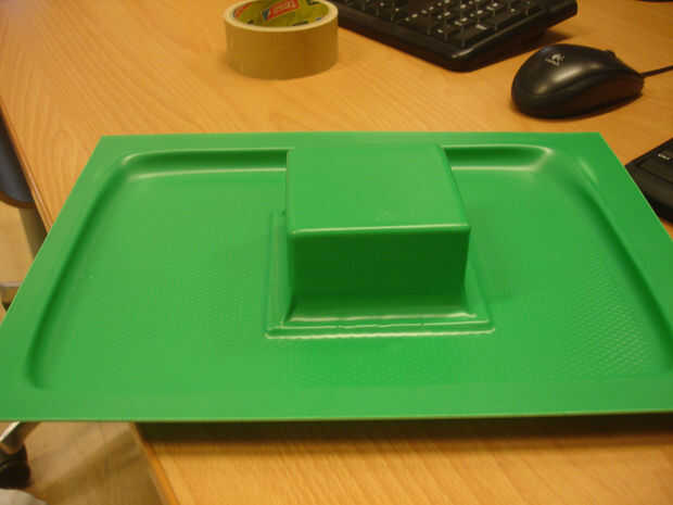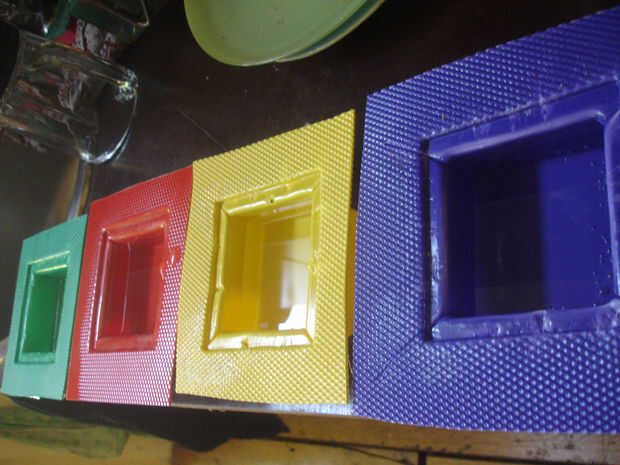 Hago un contramal (drawaing 10) y la bandeja para hacer los contenedores. Era difícil salir del contramal. Así que utilizo un montón de grasa para sacarlo, y que funciona un poco. Y otra opción era hacer agujeros en el mal por lo que el aire puede salir y es fácil, pero que era tarde para mí, mi mal era grueso para perforar los agujeros en ella. La última opción era colocar un tornillo y tire.
