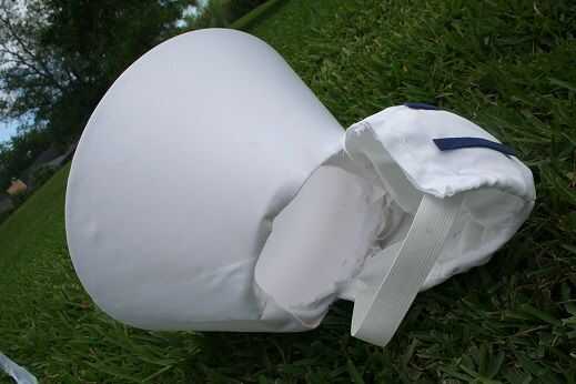 Coser la tapa en el extremo pequeño de la pantalla y luego pegar el globo plástico en el interior de la lámpara. Hay un área alrededor de la barbilla que el usuario puede ver, pero la visibilidad es limitada.