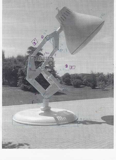 Para hacer mi lámpara como película más preciso posible, terminé haciendo un montón de investigación en tamaño y dimensiones específicas de Luxo Jr. También, aparte de la cabeza, sabía que el resto de sus "patas" de mi lámpara de anglepoise existente podría cortarse a escala, para que se ajuste a mis necesidades. Encontré el debajo de imagen de Flickr y fue perfecto, puesto que dio un buen recubrimiento estructurado para la estatua entera. Imprimir desde mi computadora, hizo algunas relaciones básicas y más o menos había estimado que mi lámpara estarían en alrededor de 1/30 del tamaño de pie en 1 pies de altura.