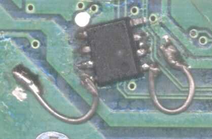 Soldar los cables a los pines. Usted querrá mantener los cables en el medio con las pinzas (para evitar movimientos y también para actuar como un disipador de calor). Aplique la plancha por un tiempo más breve posible - la idea es mantener el cable de calefacción hasta el punto donde se funde la soldadura en el otro extremo. Por eso tengo el lazo de cables alrededor como esta, ya que es estrictamente necesario - si tomaron la ruta más corta posible, sería imposible tratar con solamente un extremo en un momento.