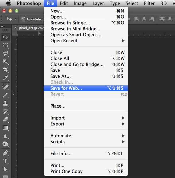Una vez que estés satisfecho con tu arte del pixel, ir archivo > Guardar para Web.