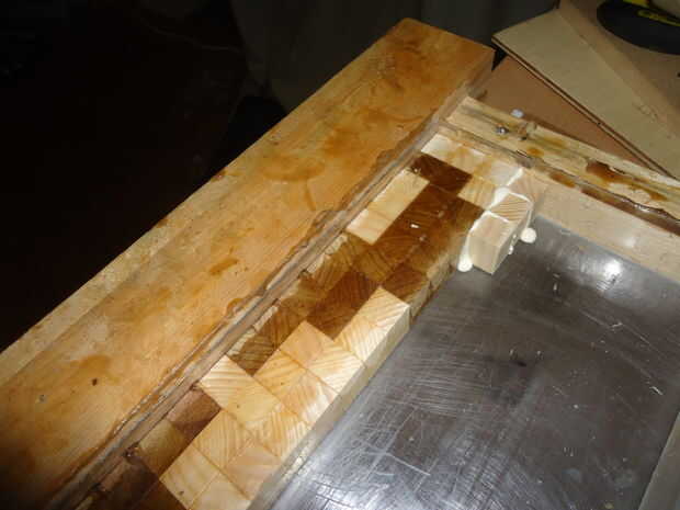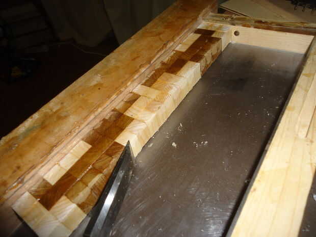 Luego pegan em una fila a la vez, usando pinzas y un borde de plexiglás alineado para conseguir todo lo agradable y apretado. Después de cada fila raspó y pierden trozos de pegamento apagado con un cincel ancho así que la siguiente fila se sentaba muy bien. Descubrí que después de alrededor de 4 filas las cosas tendían a obtener un poco torcidas, tan trabajado en secciones que serían conseguir pegadas juntos más adelante.