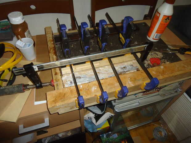 Me hice una plantilla pega... Se trataba de un borde cuadrado grande a la abrazadera, con una capa de metacrilato de chatarra para detener todo pegadas... Tome un vistazo a la foto, usted conseguirá la idea.