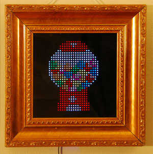Mi objetivo era comercializar PIXEL como una obra de arte así que sabía tirar que, iba a necesitar un verdadero arte. El contenido lo hice yo definitivamente no iba a cortar. Exhibición del PIXEL 32 x 32, esencialmente cada LED es igual a un píxel. Así como la suerte lo tendría, es una subcultura de artistas posterior tiro que gusta trabajar en el nivel de píxel tal como se hizo en los días tempranos de computadoras y video juegos. Se hacen llamar artistas del píxel y se puede encontrar en sitios como pixeljoint.com y wayofthepixel.net. Así que fijé en estos foros lo que estaba buscando y como la comunidad de fabricante, son un montón amable dispuesto a ayudar. Me ofrecieron un cargo nominal a cambio de su trabajo de arte, algunas de las existentes y algunas nuevas. A continuación se muestran 5 artistas que ofreció para ayudar. El acuerdo era conseguir algún trabajo de arte para un precio decente y consiguen cierta exposición. También firmó para arriba para hacer una aplicación Android para cada artistas mostrando su trabajo en píxeles.