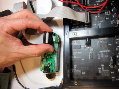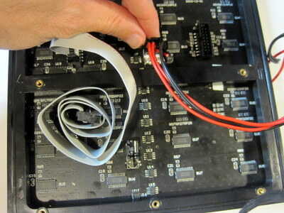 ![]() | Conecte el otro extremo del cable de matriz de LED a la Junta. Al igual que en el lado de la matriz de LED, el cable sólo va en un sentido. | |