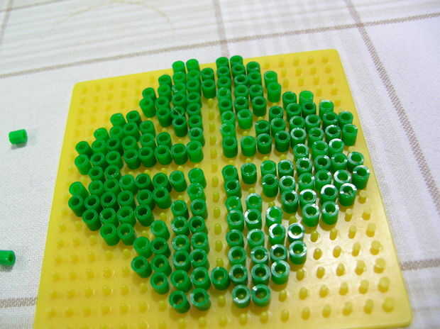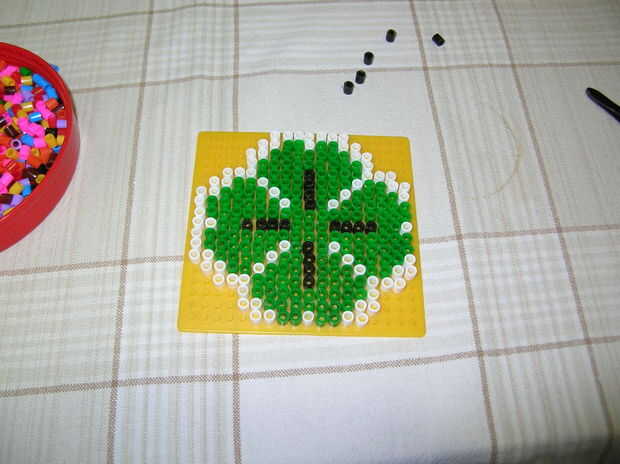 Utiliza el patrón que generalmente viene con los granos para hacer la forma de un trébol, lo suficientemente grande como para sostener la base de su vaso. Aviso que cambié un poco la forma, creando así las cuentas de posición son ligeramente diferentes de la primera imagen hasta el último.