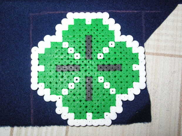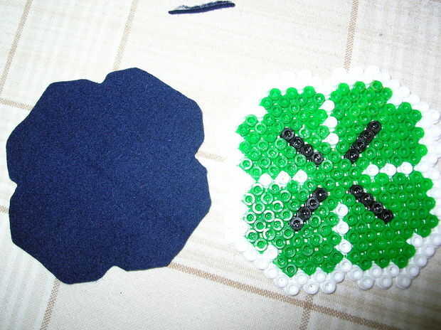 Ahora toma tu trébol y ponerlo en la pieza de fieltro. Dibujar un cuadrado que lo contiene y cortarlo. Luego, dibuja la figura del patrón en una de las esquinas. Doblando el cuadrado por la mitad, lo recortas dos de las esquinas a la vez. Repetirlo, dobla el cuadrado en la dirección perpendicular y cortando las otras dos esquinas. Usted tendrá una pieza simétrica de fieltro con la forma del trébol.