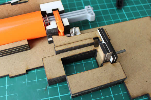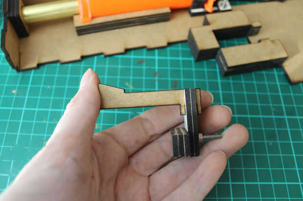 A continuación montar el riel del gatillo como se muestra en las fotos. Asegúrese de que todo lo mueve suavemente antes de ir al siguiente paso.