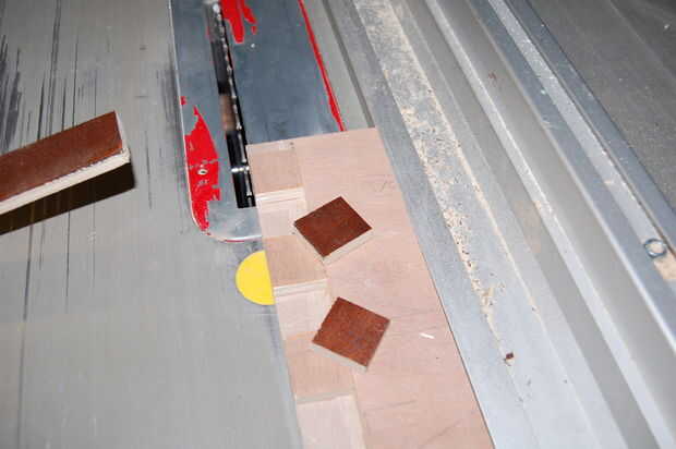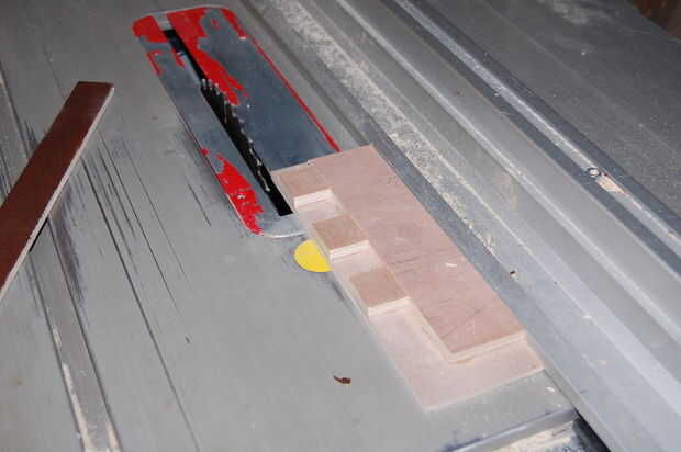 Ahora es el momento para cortar las tiras en cuadrados... vuelta a la Sierra de mesa.