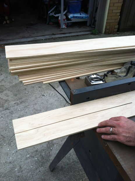 Fui a home depot y encontrado (en la sección de moldeo y corte) algunos enrejado amplia que corté por la mitad para hacer dos placas ancho de 2,75". Necesitarás 9 x 32" consejos para hacer la cosa entera, así que asegúrate de que comprar suficiente del enrejado.
