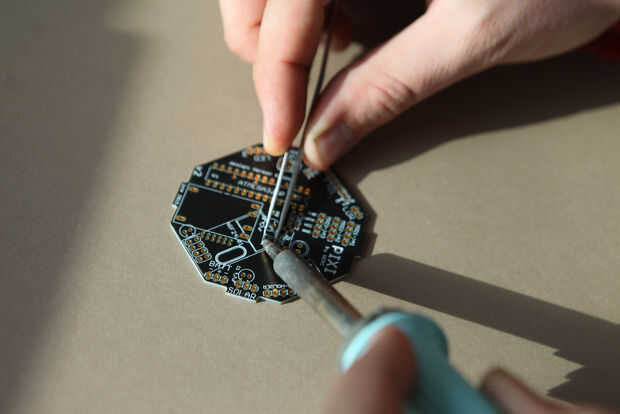 Consejo: basta con añadir la soldadura a una almohadilla primero. Chip de posición. Uno de los pines de soldadura y soldadura otros pins