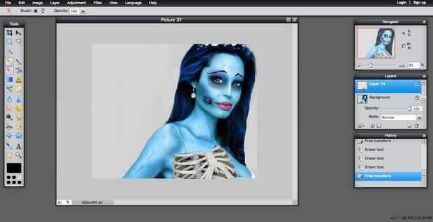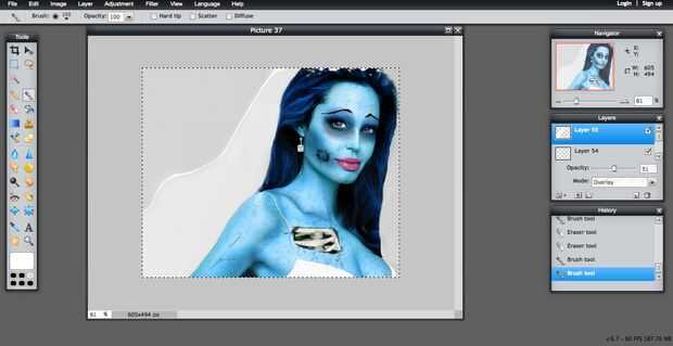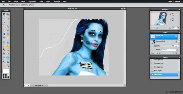 1) también, porque este es un tutorial de Corpse Bride , decidí añadir un velo. Con la herramienta de dibujo en el lado izquierdo, he pintado una línea blanca para imitar un velo.