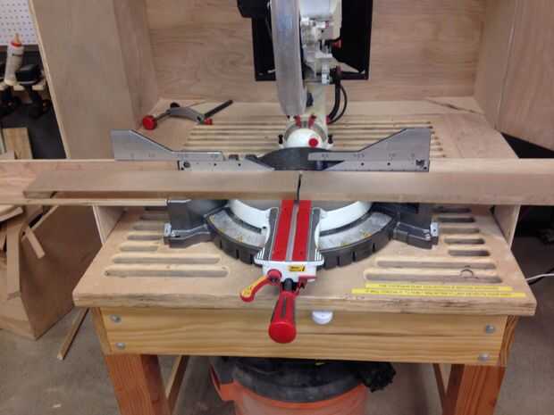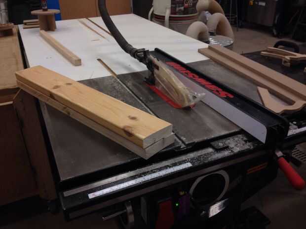 Utilizando la tabla de sierra para cortar ingletes, ensambladora, y cepilladora corta las tablas restantes al tamaño.