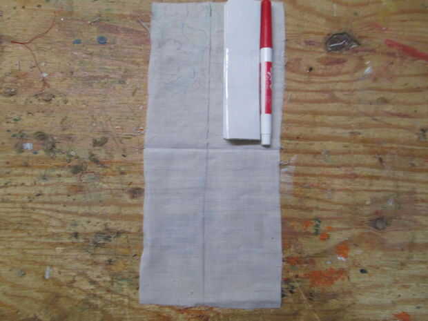 Con nuestra pizarra realizado, tenemos que empezar trabajo en la pizarra. No sólo mantener nuestros materiales en un solo lugar, actuará como una goma de borrar. Comencé por la medición de una pieza de tela. La longitud era un poco más de dos veces la longitud del marcador, y el ancho era un poco más que el tamaño de la pistola y la pizarra. (la línea negra que ves en el paño es donde corté la it. No es una ciencia exacta... pero it'l.