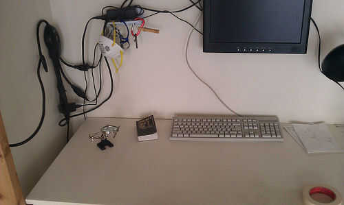 ¿Mi solución? Una superficie de pizarra aplicada directamente a mi banco de trabajo. Esto me permite mantener mis notas, etc. en un solo lugar conservando el original escritorio bienes raíces.
