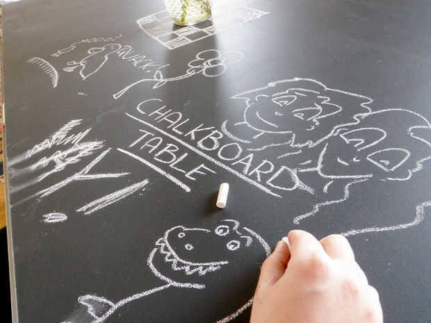a un niño, su mesa Little Tikes es donde todo sucede: desayunos, almuerzos, merienda, cena, recreo y tarea. ¿Por qué no llevar una función más para de su poco uno tabla agregando una tapa de pizarra para notas y garabatos? Pintura pizarra es un inven