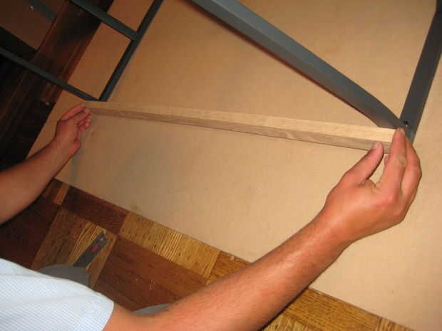 Coloque una tabla sobre la barra superior los dos, Cargúelos abajo y deje que el pegamento seque.