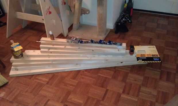 5 2 "x 6" 5 pies (2 de 2 "x 6" x 10' mas un tipo de madera que tiene suerte chatarra)-$10 más 10 minutos de perder el tiempo.