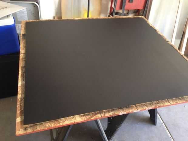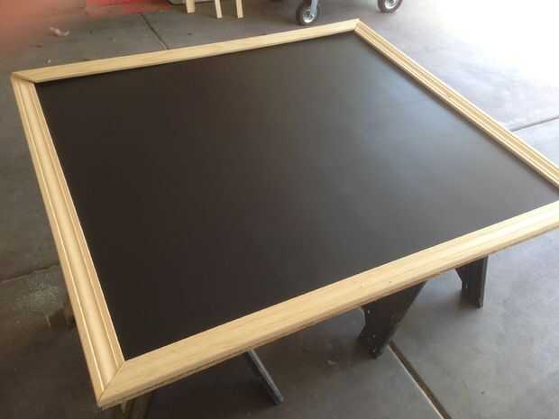 Después de que el líquido de uñas conjunto pinté el metal con alguna pintura de pizarra de Glidden de la ferretería. Esta pintura es la parte más costosa del proyecto. Es de $15,00 por pinta. Es importante que siga el secado y el curado de las instrucciones en la lata. Si se intenta correr la pintura no le dará la superficie lisa agradable que necesita. Además, debe utilizar un rodillo de espuma densa en lugar de un cepillo.