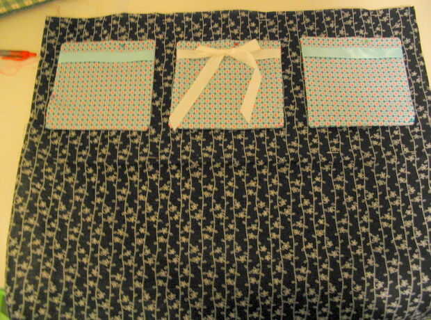 Paso 2: Organizar los tres bolsillos como se desee en la parte superior del panel de fondo y pin en su lugar. Hayas corregido mina igualmente a través del panel, pero se vuelven loco!