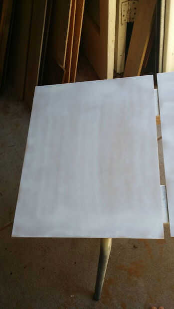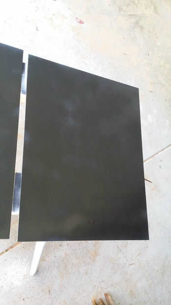 Me consiguió algunos barato imprimación en spray y le dio el tablero del forro una capa bastante gruesa luego golpeó con una lata de pintura aerosol en pizarra. Siga las instrucciones en las latas con respecto a cómo rápidamente usted puede Decubra etc..